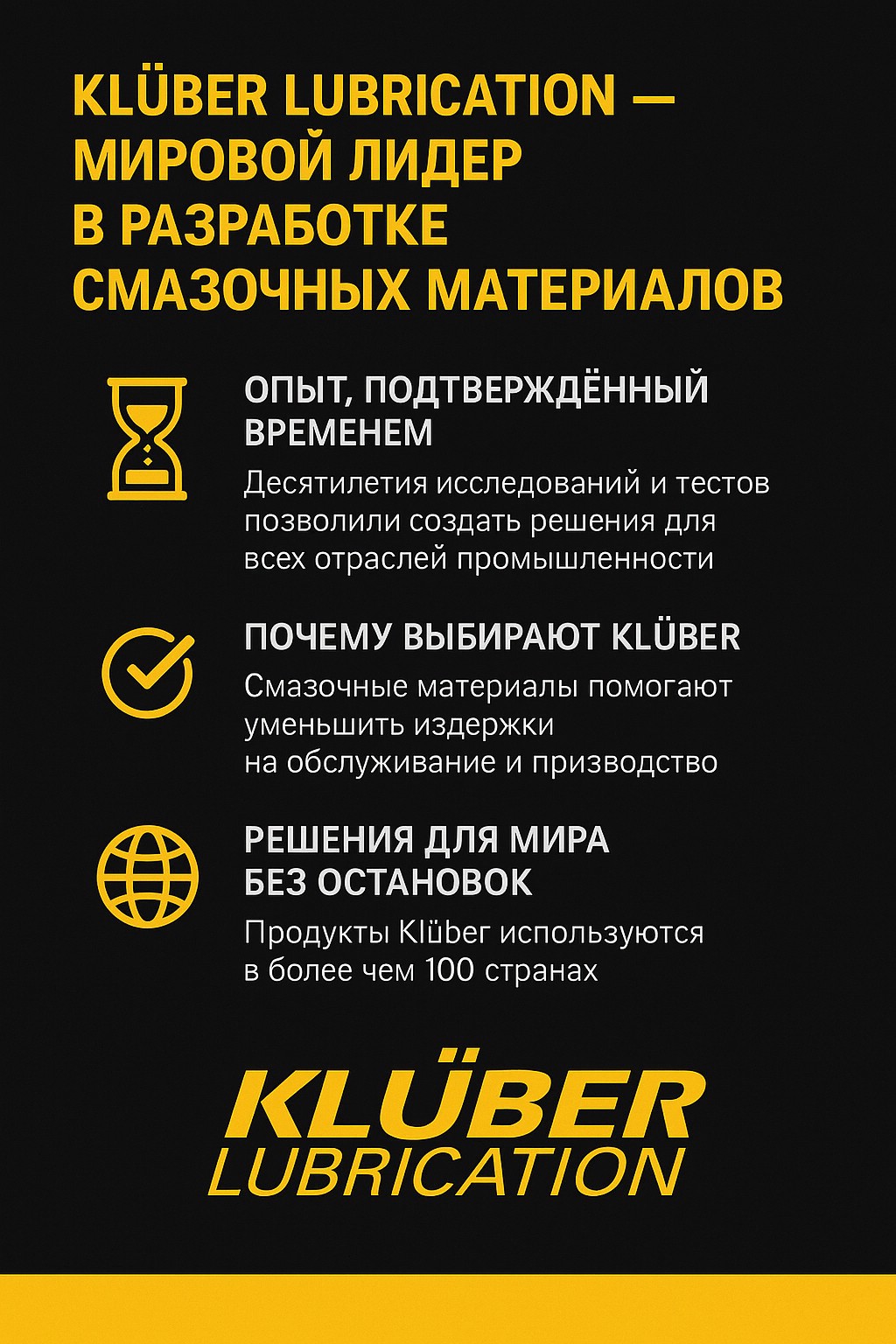 Klüber Lubrication — один из признанных мировых лидеров в области разработки и производства смазочных материалов для промышленности.